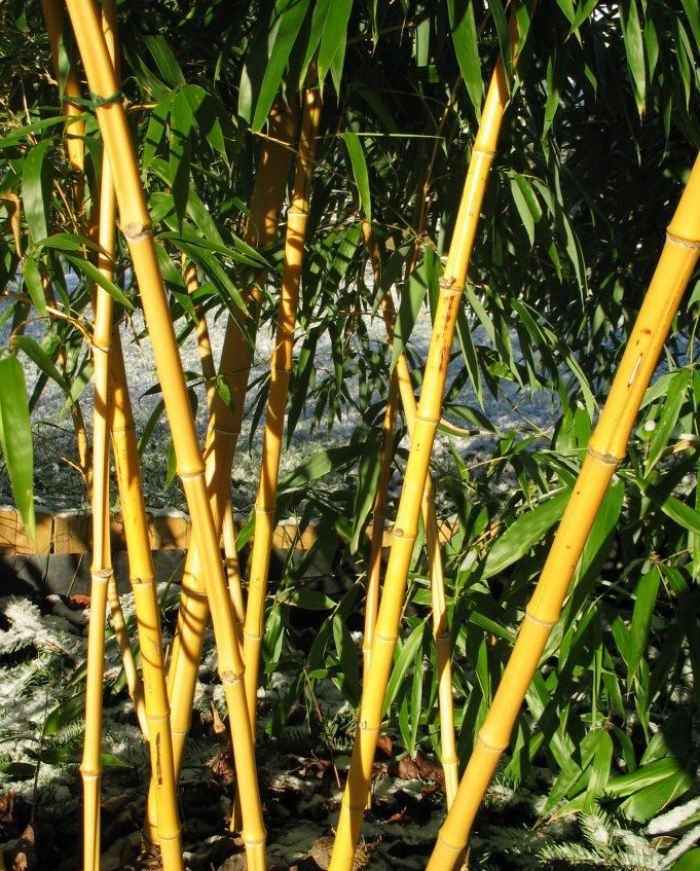 Der Goldrohr-Bambus ist einer der auffälligsten seiner Art. Seine zahlreichen, schwefelgelben Halme, die sich in der Sonne orange-rot färben, sind ein echter Blickfang und eine farbliche Abwechslung in jedem Garten. Junge Halme bilden nicht selten aus der Basis heraus einen dekorativen Zick-Zack-Wuchs. Dieser Bambus eignet sich hervorragend zur Einzelstellung oder als Hecke. Bei genügend Platz kann auf eine Rhizomsperre verzichtet werden, ansonsten ist der Einbau zu empfehlen.