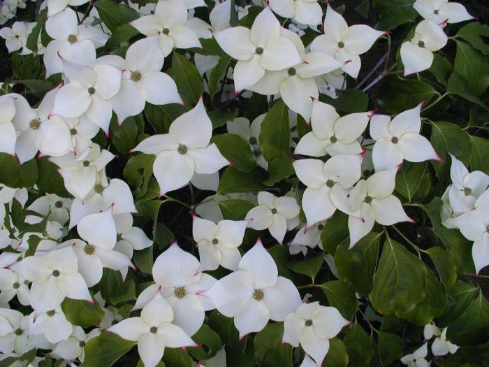 Dieser aus China stammende Blumenhartriegel, wächst als dichter, aufrechter Großstrauch. Im Juni entfalten sich die vier großen, weißen Hochblätter in so großer Zahl, dass sie die Blätter fast völlig verdecken. Besonders zierend sind im Herbst die meist zahlreichen, roten, zu einer erdbeerartigen Scheinfrucht verwachsenen, essbaren Früchte. Seine leicht gewellten Blätter verfärben sich jetzt in ein leuchtendes Rot.
