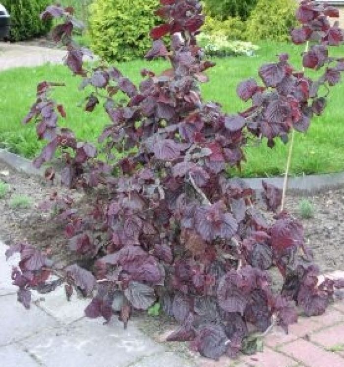 Der gedrehte, korkenzieherähnliche Wuchs und die braunrot gewellten, teils eingerollten Blätter, verleihen diesem Gehölz eine ganz besondere, eigenwillige Note und machen die Pflanze zu einer Besonderheit. Vor dem Blattaustrieb erscheinen die braunroten Blütenkätzchen gefolgt von den Haselnüssen im Herbst. Nach dem Laubfall kommt der bizzare Wuchs besonders gut zur Geltung.