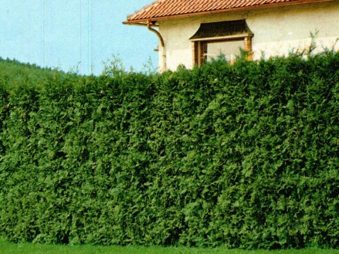 Diese Thuja ist dichter und kompakter als die Wildform. Sie wächst sehr rasch mit einem jährlichen Zuwachs von 20-30 cm. Schnittverträglich, sehr anspruchslos und robust, auch für Einzelstellung geeignet. Häufig gepflanzte Sorte.