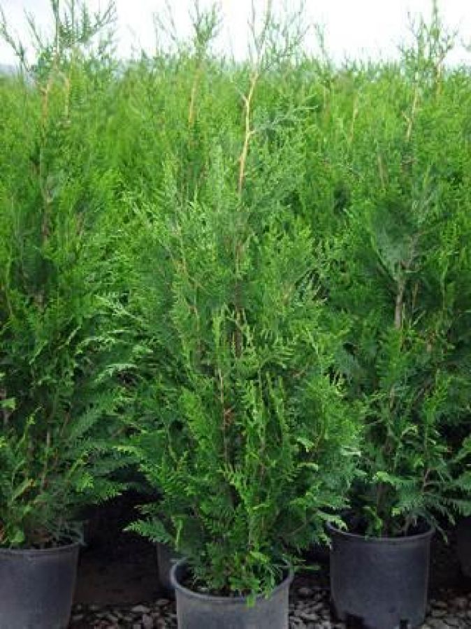 Der Riesen-Lebensbaum hat eine schlanke, zypressenhafte Wuchsform. Der Jahreszuwachs beträgt bis zu 35 cm. Diese Thuja wächst auf allen Böden mit ausreichend Feuchtigkeit. Sie ist sehr schnittverträglich und wird von innen nicht braun. Eine ideale Heckenpflanze für einen recht schnellen Sichtschutz.