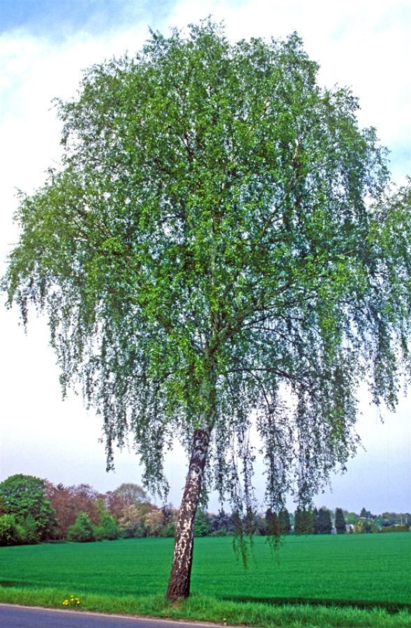 Die heimische Sand-/Weissbirke ist eine der bekanntesten Baumarten. Die weißgraue, papierartige, im Alter rissige Rinde, hebt den Stamm schön vom dunklen Hintergrund ab. Typisch ist auch der überhängende Wuchs, der hellgrüne Austrieb im Frühjahr und die goldgelbe Herbstfärbung.