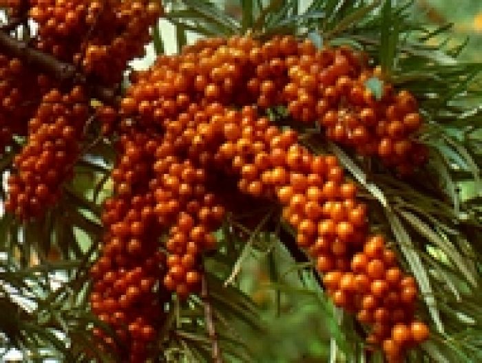 'Leikora' ist die weibliche Zuchtsorte unserer heimischen Sanddorn-Art. Sie zeichnet sich vor allem im Herbst durch ihre vielen orangeroten Früchte aus, die in dem weidenähnlichen, grünen bis silbriggrauen Laub besonders gut zur Geltung kommen. Die Früchte haben einen hohen Vitamin-C-Gehalt, enthalten zudem Beta-Carotin und Gerbstoffe.