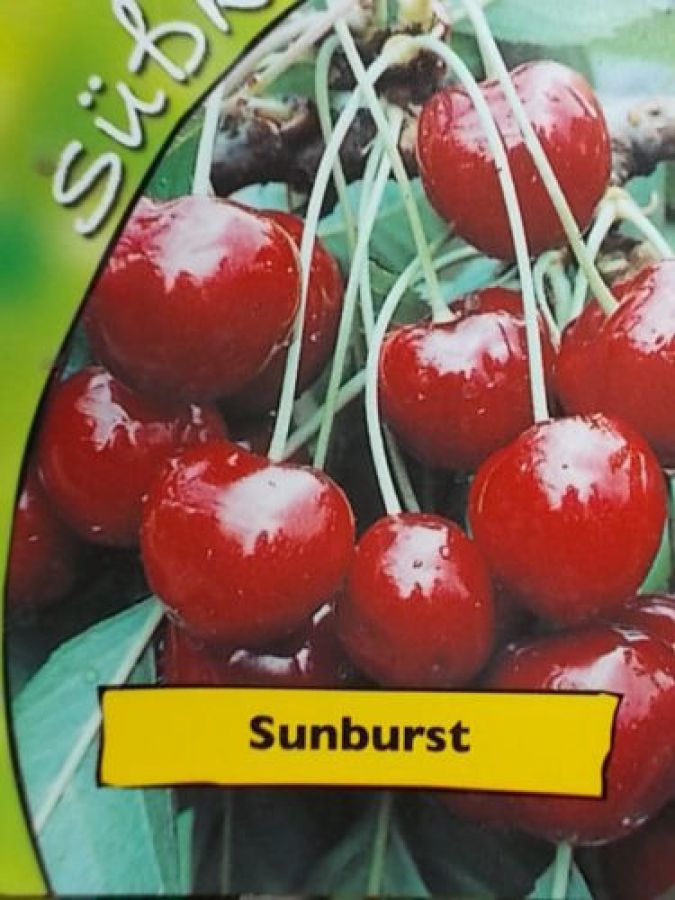 Sunburst: Groß, platzfest, dunkelrot, süß mit hellen Sprenkeln, selbstfruchtend. Burlat: Sehr Große flachkugelige Kirsche, festfleischig, süß, rot-dunkelrot. Pflückreife: Juni-Juli Genußreife sofort.