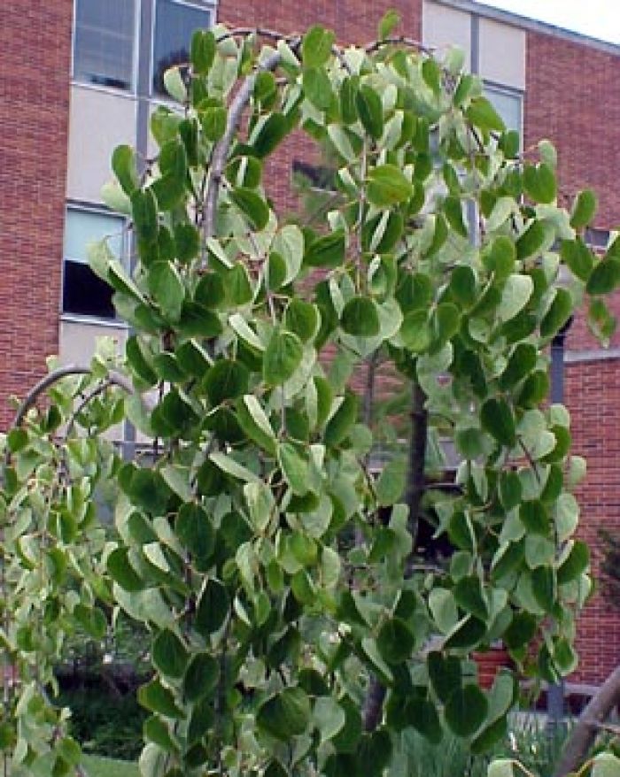 Die seltene Hängeform des Katsurabaumes - auch Lebkuchenbaum - mit seinem malerisch, kaskadenartigen Wuchs, verleihen jedem Garten eine besondere Note. Von den teils unregelmässig abstehenden Ästen, hängen die Zweige meist bis zum Boden herab. Seinem, nach Lebkuchen und Karamel duftenden Herbstlaub, verdankt der Lebkuchenbaum seinen Namen. Besonders auffallend sind die im Austrieb rötlich gefärbten Blattstiele. Im April erscheinen die karminroten Blüten und ab September beginnt die prächtig gelb-orange Herbstfärbung.